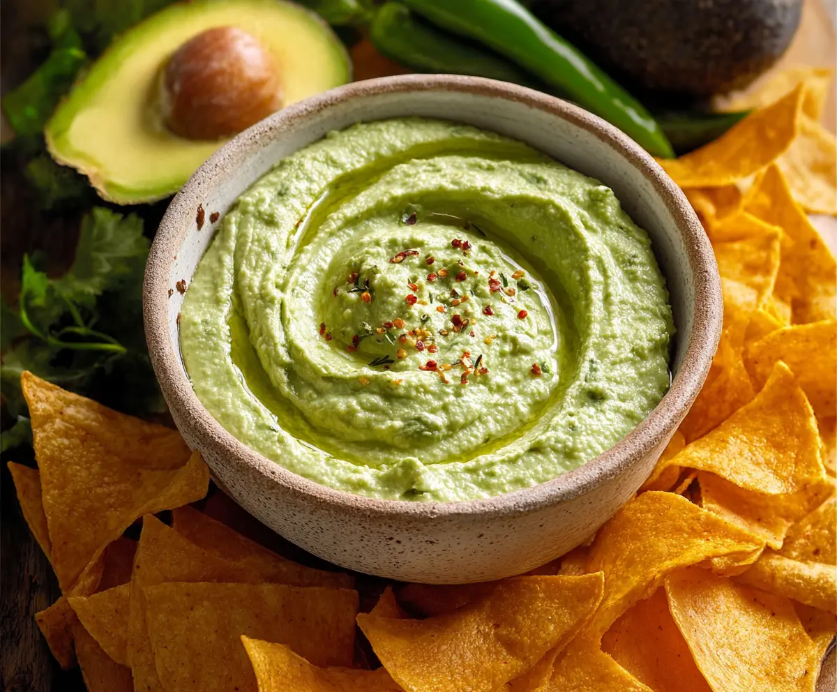 Creamy avocado dip with fresh herbs and a hint of lime, perfect for snacks and parties.