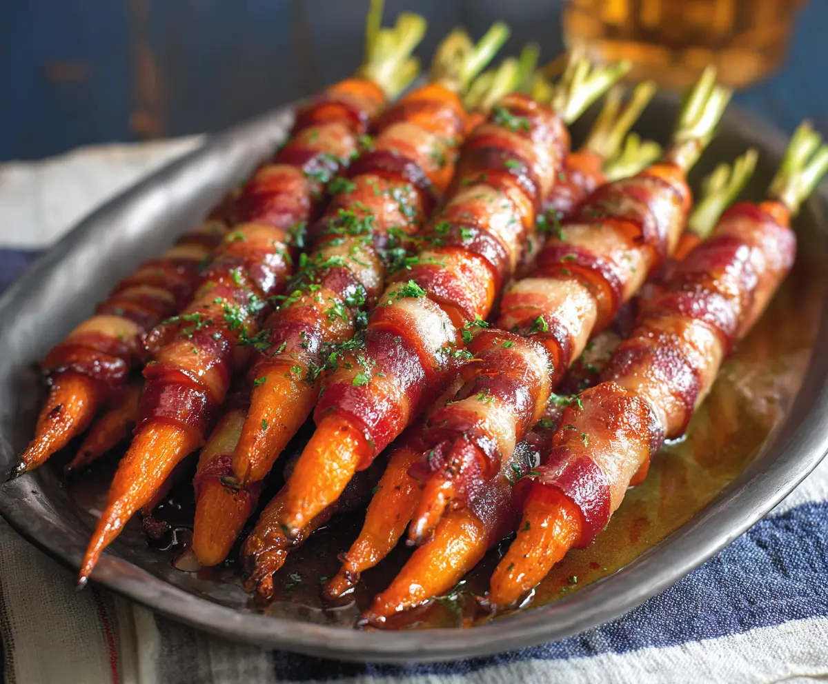 Bacon wrapped carrots are a tasty surprise that everyone loves! The sweet crunch of the carrots combined with the crispy, salty bacon is simply delicious. Perfect for snacking or as a side dish!
