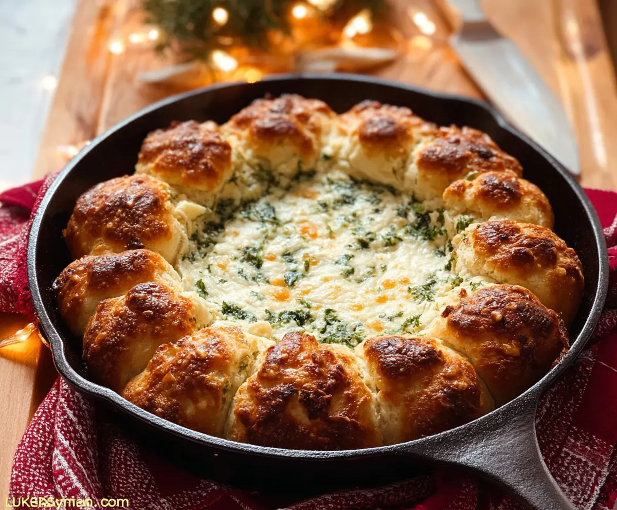 This Baked Biscuit Wreath Dip is a fun and festive dish! It’s made with gooey cheese, tasty herbs, and warm biscuit pieces for dipping. Perfect for parties!
