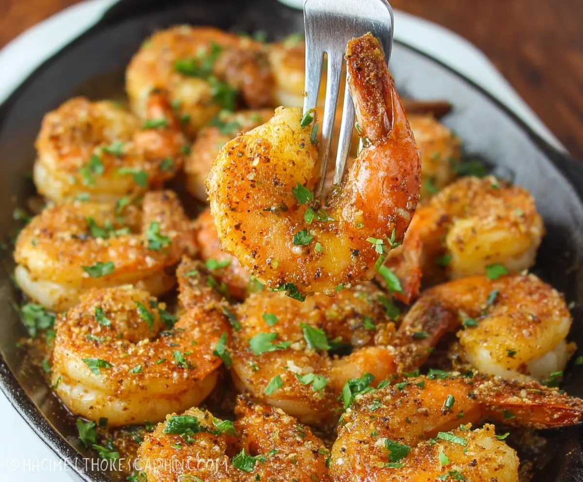 Take a baking dish or an oven-safe skillet and arrange the seasoned shrimp in a single layer. This will help them cook evenly and get that nice color.