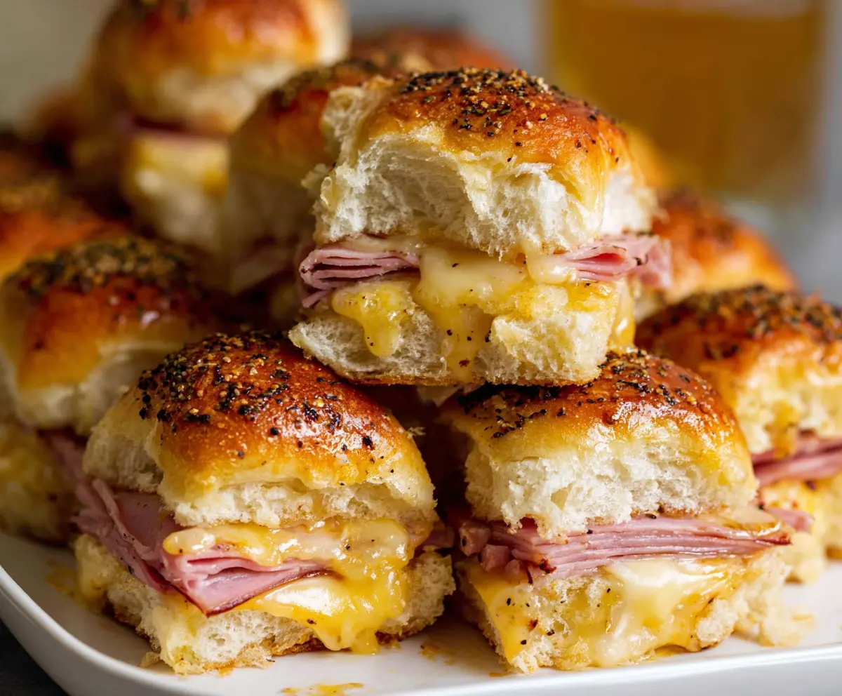 Enjoy these irresistibly cheesy, buttery ham sliders that are perfect for gatherings or a quick snack!