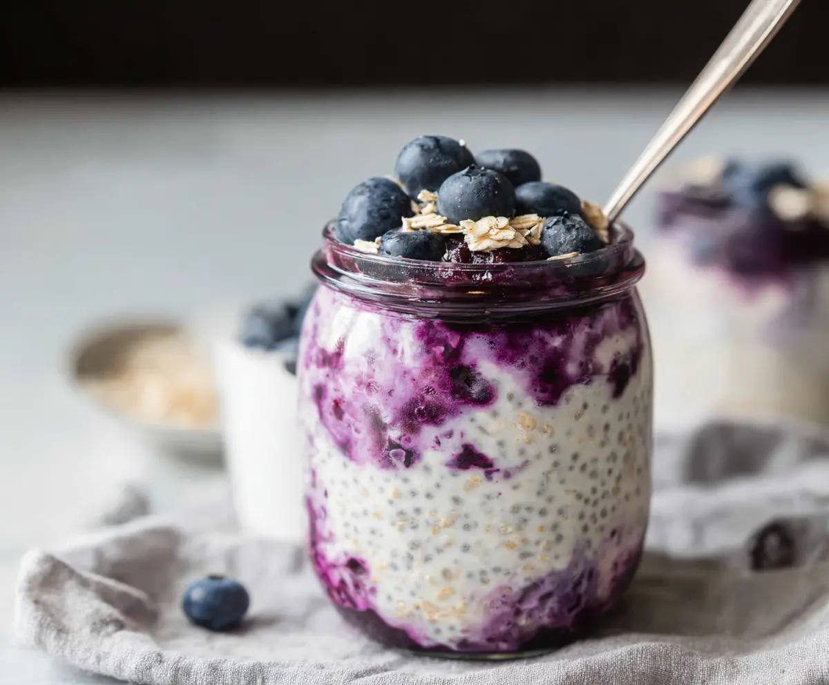 Blueberry Cheesecake Overnight Oats combine creamy yogurt, sweet blueberries, and oats for a yummy breakfast. Just mix, chill, and wake up to a delicious treat!