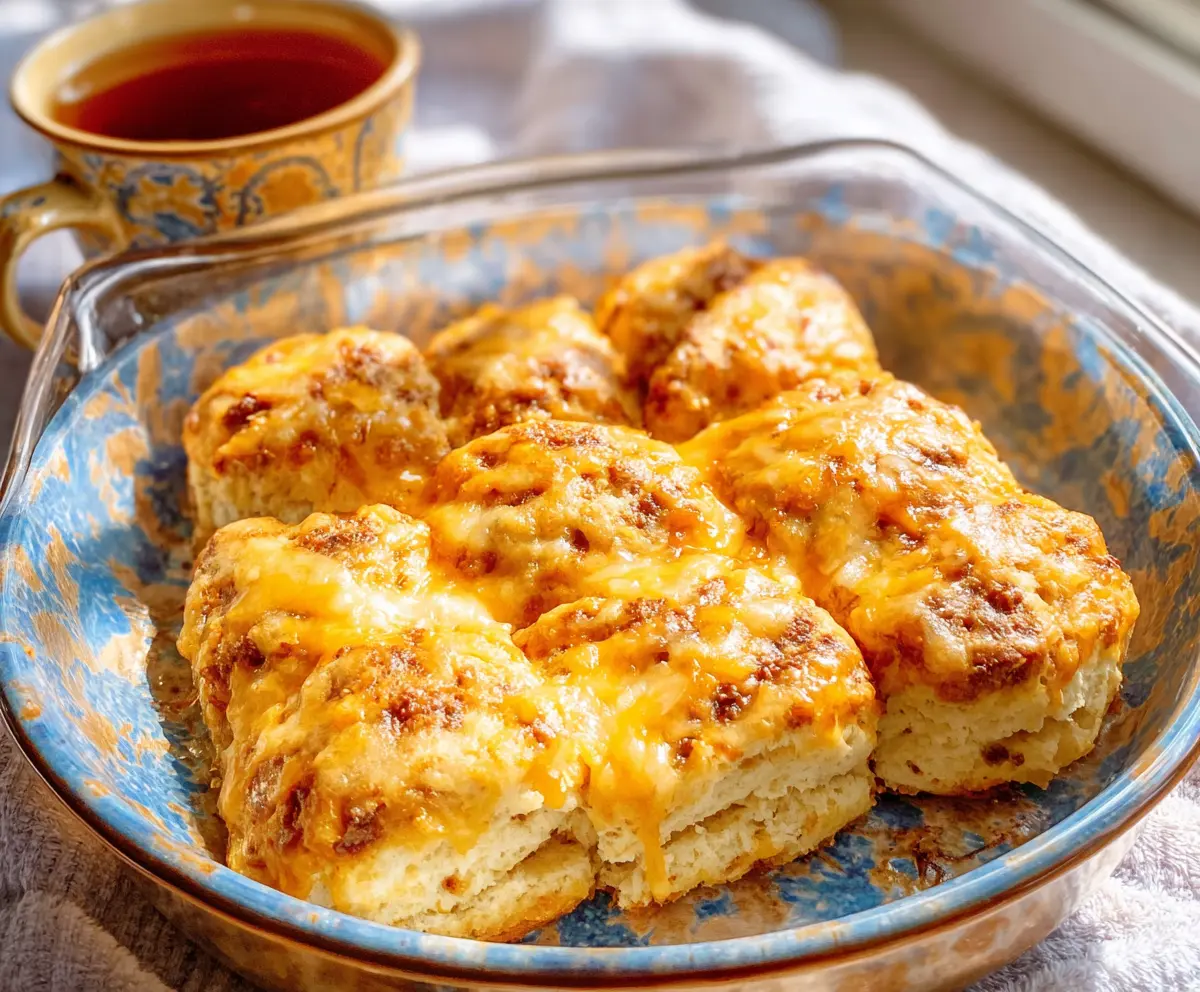 Once they’re out of the oven, let them cool for just a minute. Serve warm, and feel free to top with extra pats of butter or a drizzle of honey for a sweet touch. Enjoy these rich, cheesy, buttery biscuits as the perfect start to your day!