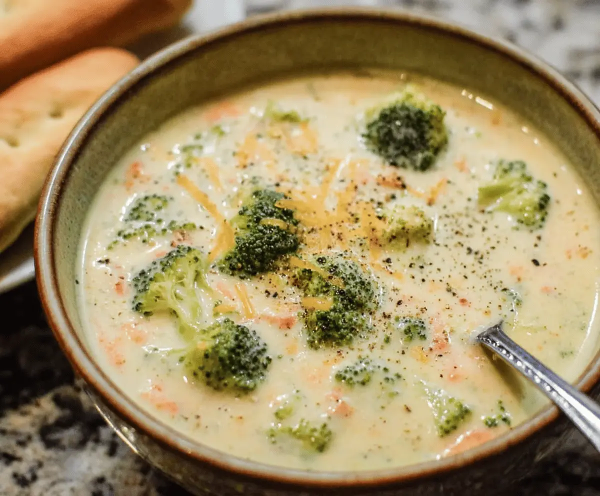 I love enjoying this soup with a slice of bread to dip. It’s perfect for chilly days when you need to warm up and feel cozy. Grab a spoon, and let the cheesy goodness begin! 🥦🧀