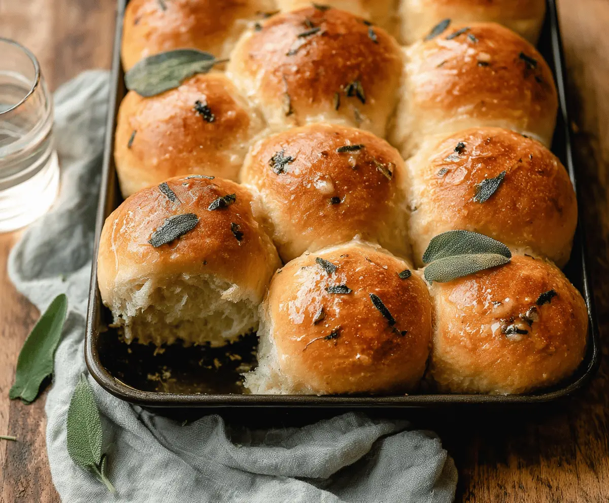 These Brown Butter Sage Dinner Rolls are warm, fluffy, and bursting with flavor! The nutty taste of brown butter mixes perfectly with fresh sage for a tasty twist.