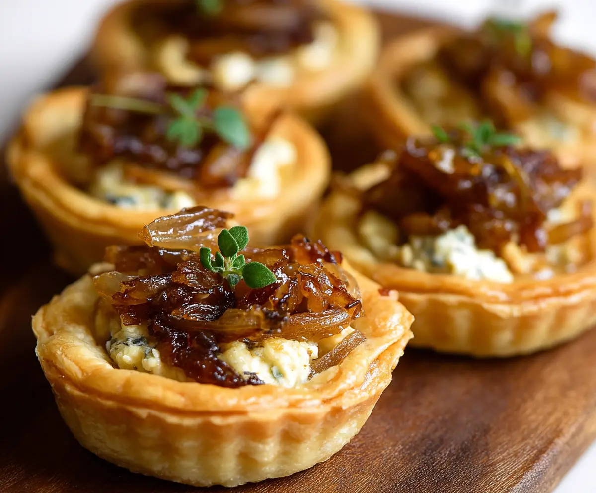 These caramelized onion tartlets are a tasty treat! With sweet, soft onions baked in crispy pastry, they are perfect for parties or a cozy night in.