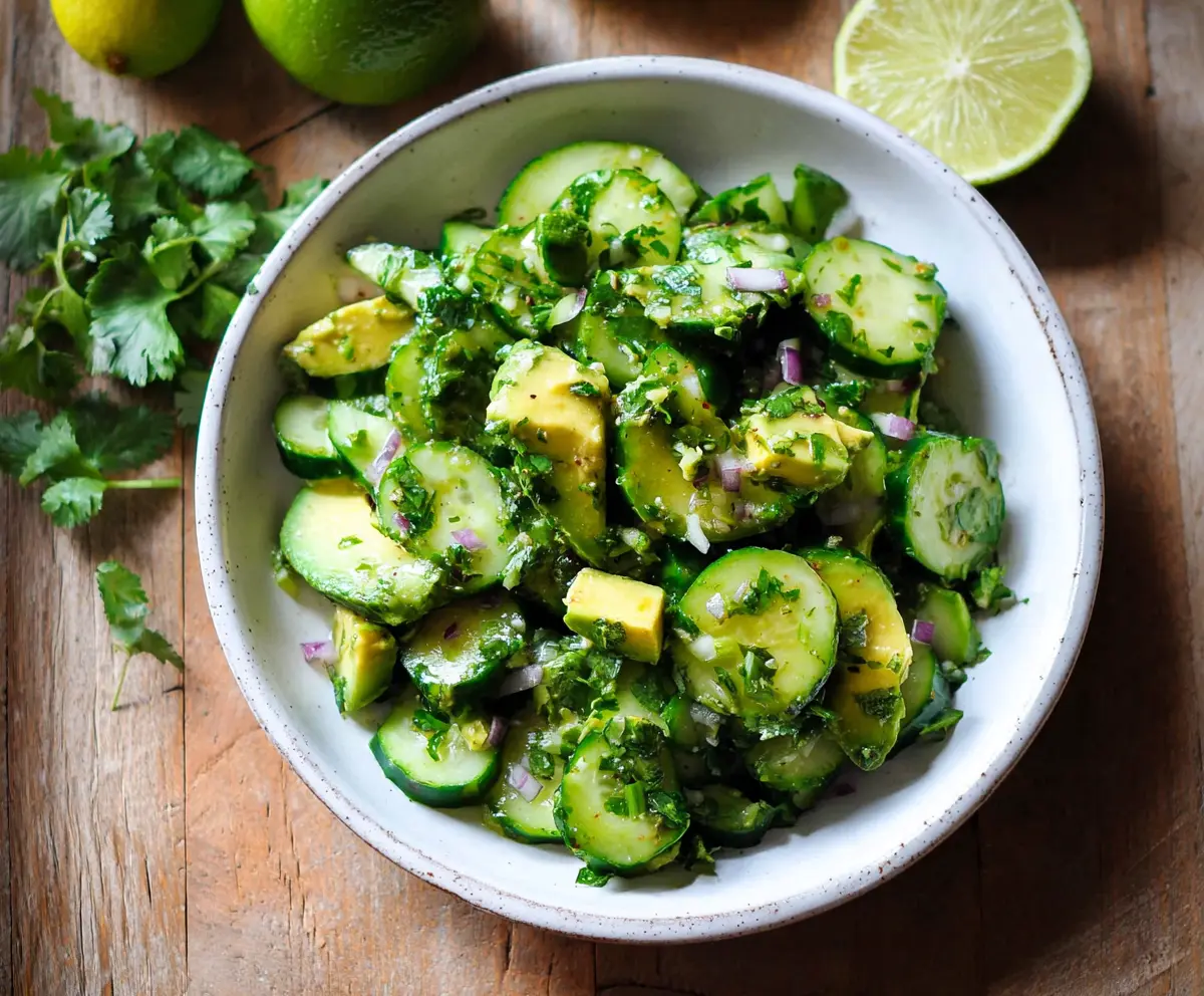 And there you have it! A refreshing cilantro lime cucumber salad with creamy avocado, perfect as a light side dish or snack. Enjoy!