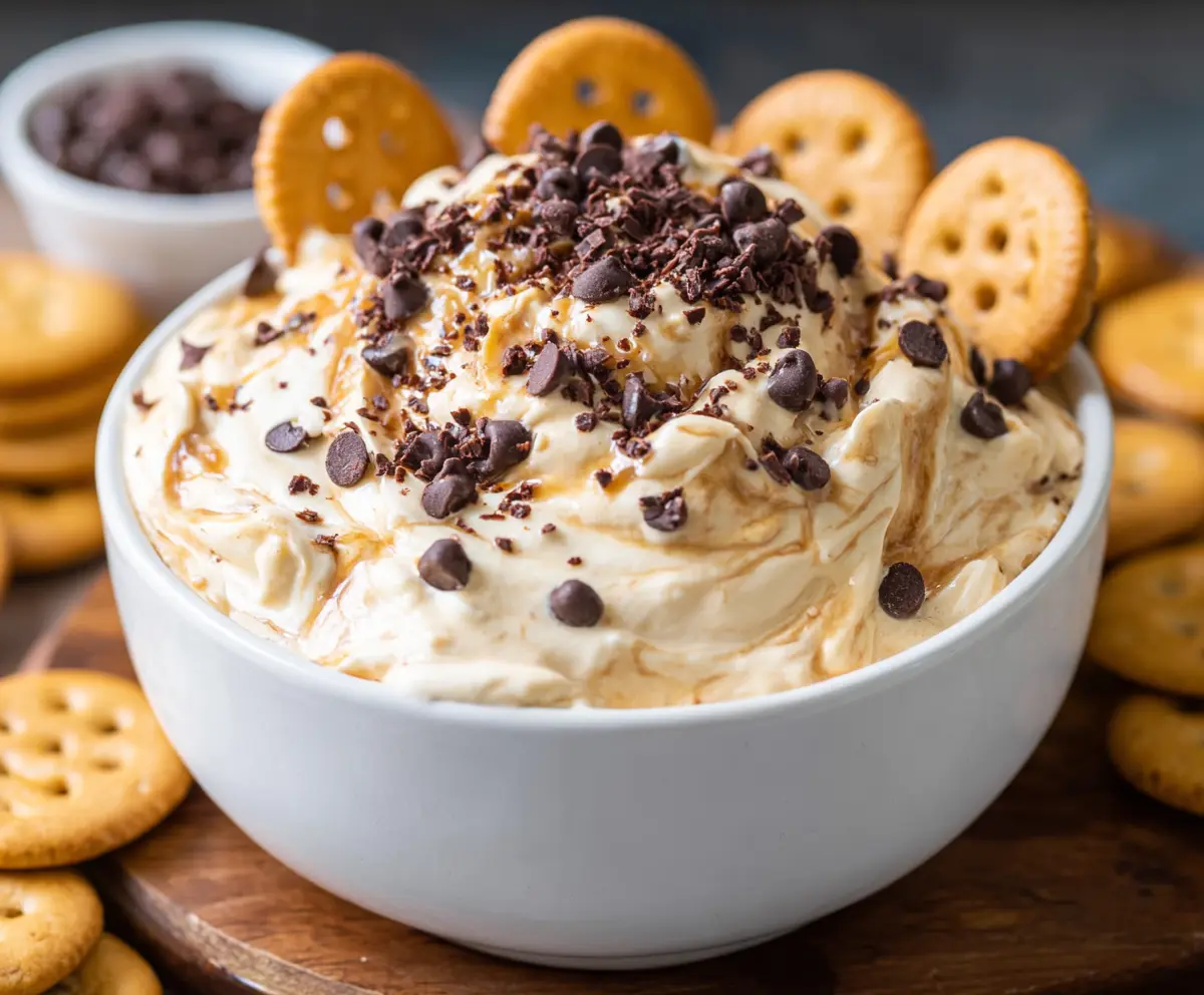 Transfer the dip to a pretty serving bowl. Sprinkle the reserved chocolate chips on top for that finishing touch!