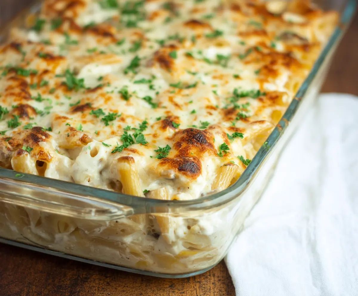 Cottage Cheese Alfredo Pasta Bake