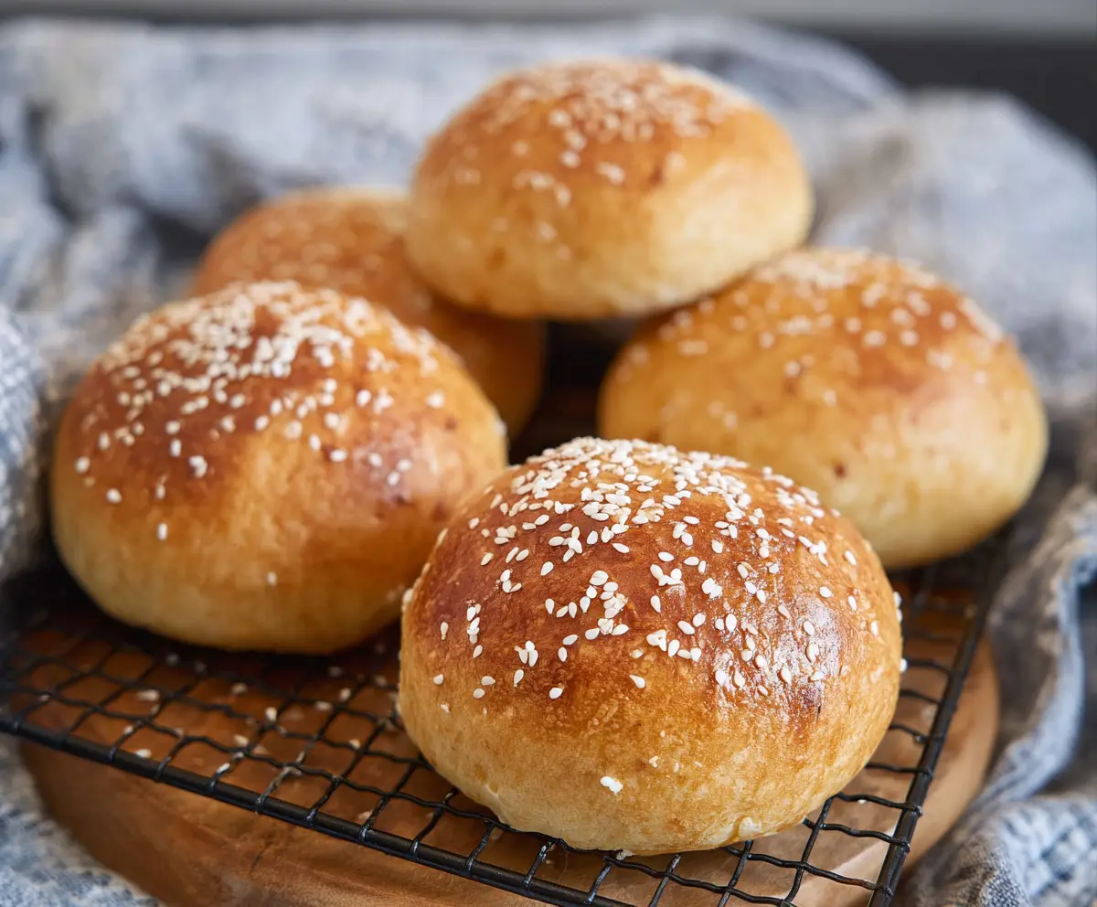 After baking, remove the buns from the oven and brush the tops with melted butter for extra flavor. Let them cool for a few minutes on a wire rack before serving. Enjoy them warm or at room temperature with butter, jam, or your favorite spread!