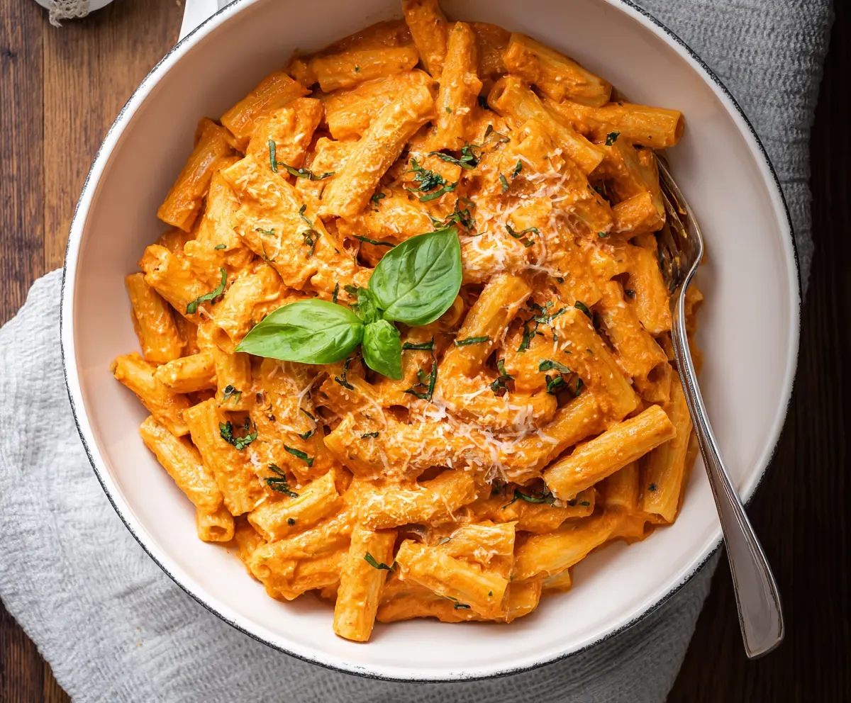 Pasta: I like using rigatoni or penne as they’re great at holding sauce. If you need a gluten-free option, try chickpea or brown rice pasta instead. They’ll give a nice flavor, too!