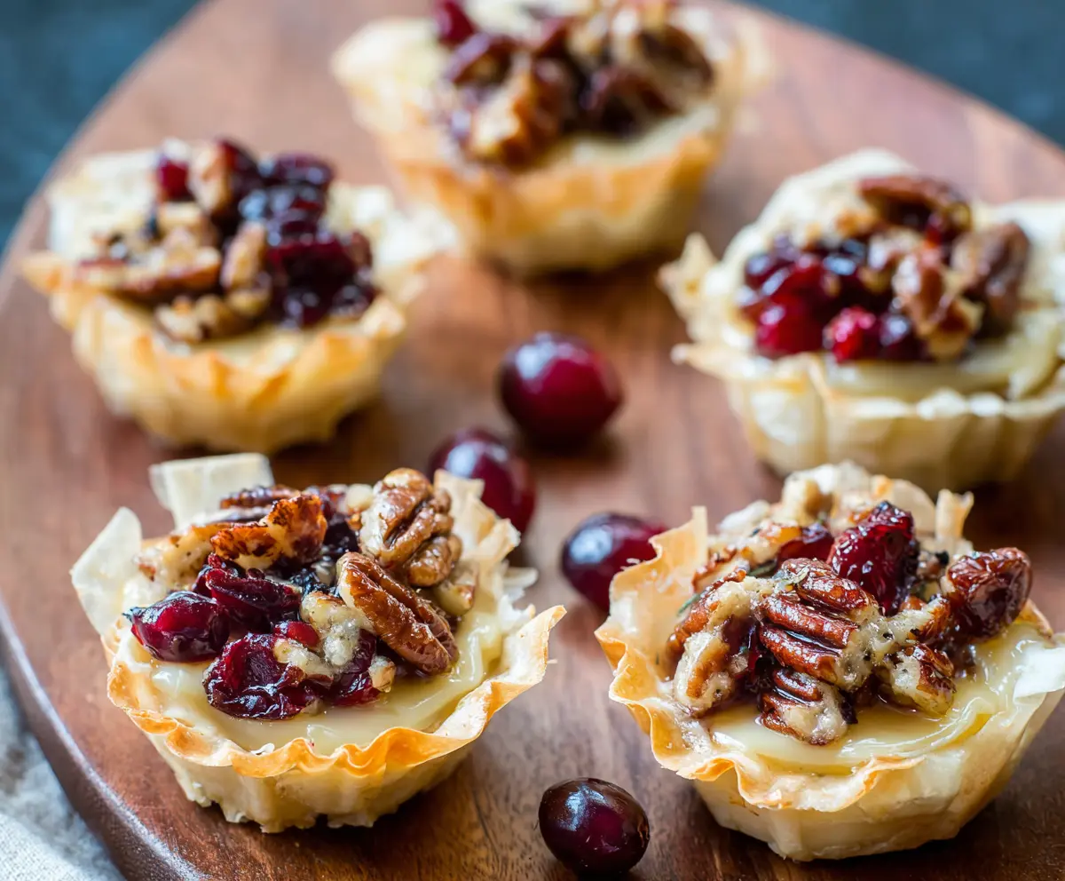 These Cranberry Pecan Baked Brie Cups are a tasty treat that’s perfect for parties! Soft brie cheese melts inside crispy pastry cups, making every bite creamy and delicious.
