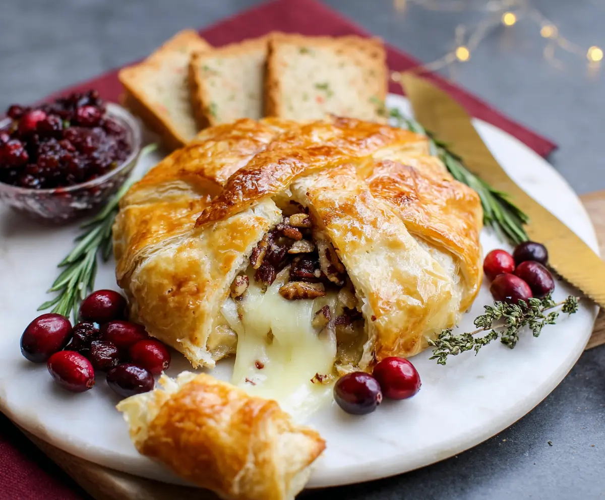 Cranberry Pecan Brie Wrapped In Puff Pastry