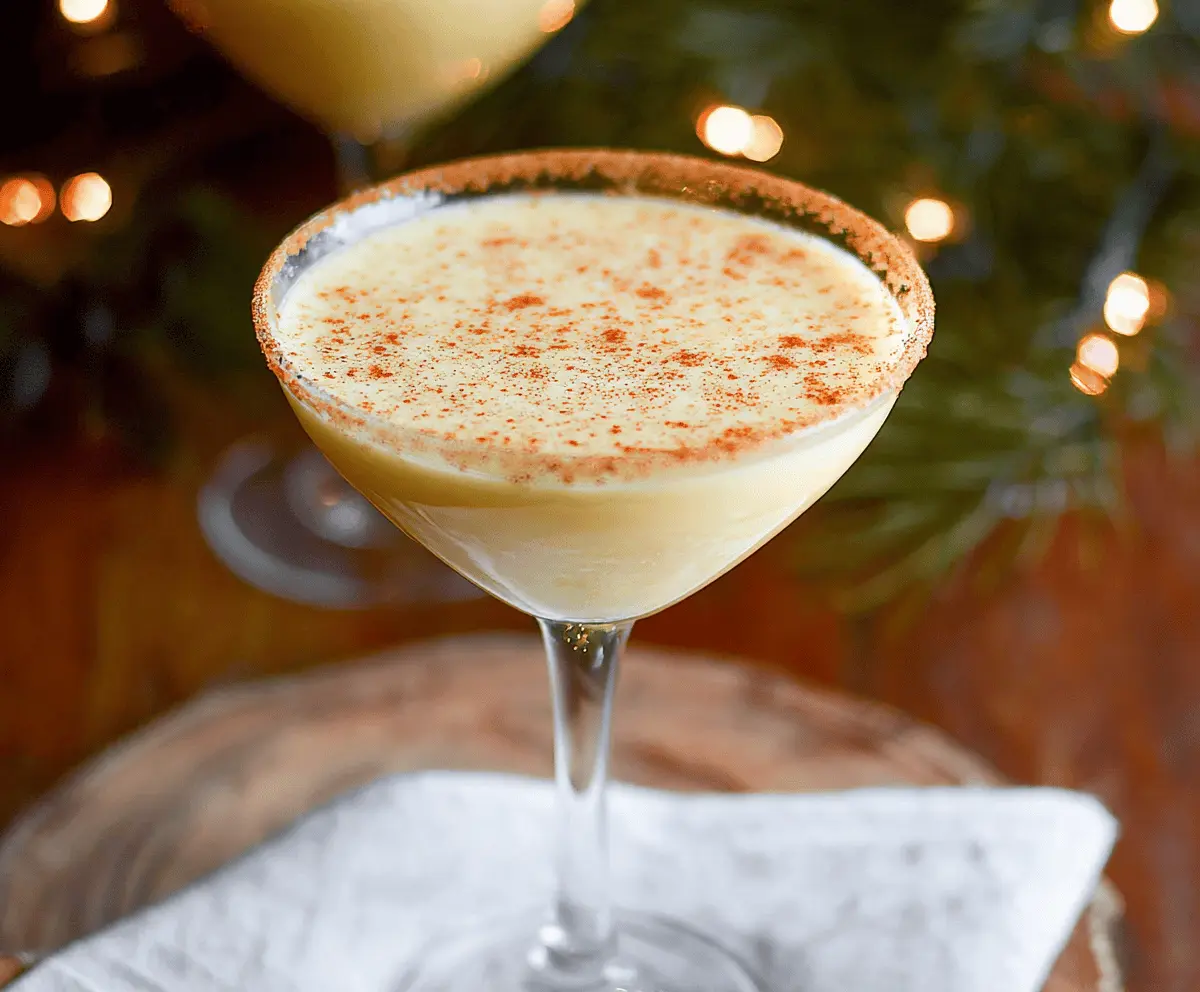 Start by preparing your martini glass. To create a cinnamon rim, moisten the rim with a tiny bit of water or eggnog. Then, dip the rim into ground cinnamon until it’s fully coated. Set it aside while you mix the drink.