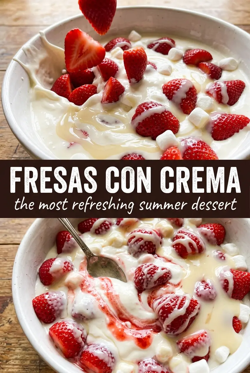 Save this Fresas con Crema for a creamy strawberry dessert with bright lime and vanilla in every spoonful.