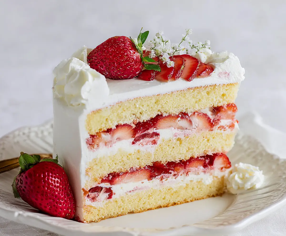 This Fresh Strawberry Cake is a light and fluffy dessert bursting with sweet strawberry flavor. Topped with whipped cream, it’s perfect for any celebration!