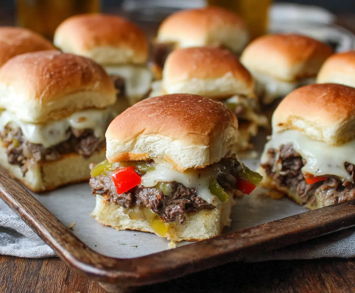 These Game Day Philly Cheesesteak Sliders are packed with tender beef, melted cheese, and savory peppers on soft rolls. Perfect for munching during the big game!