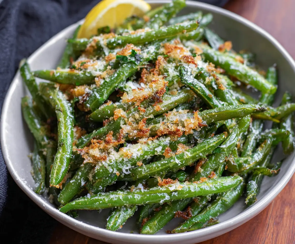 Gently toss the green beans to combine the melted cheese. Serve immediately with lemon wedges on the side for an optional zesty finish. Enjoy your flavorful Garlic Parmesan Green Beans!