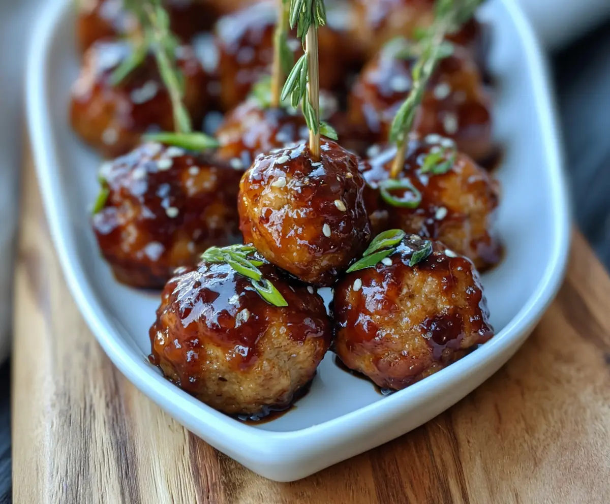 Carefully transfer the glazed meatballs onto a serving dish. Sprinkle generously with chopped green onions and sesame seeds for a lovely finish.