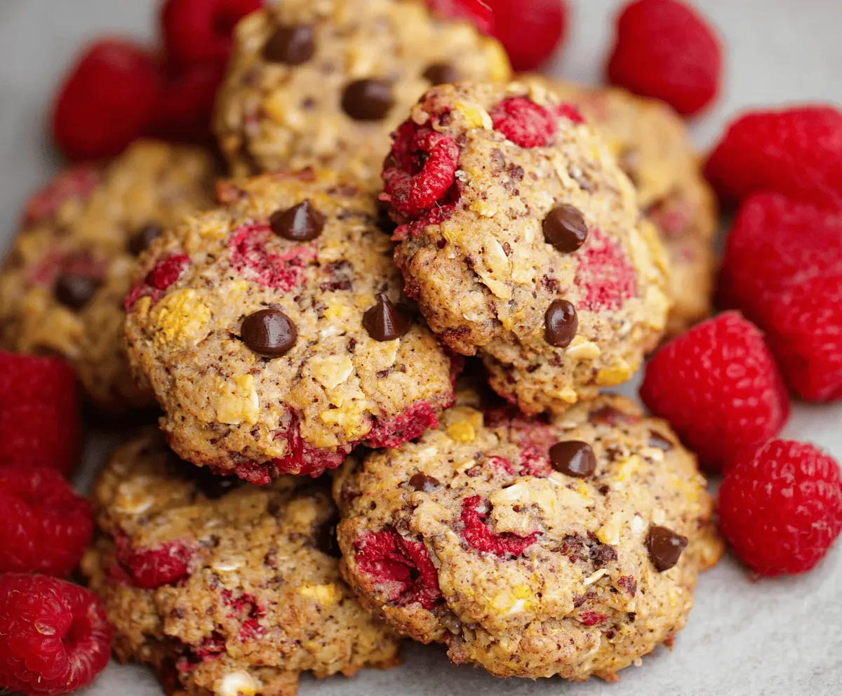 These Healthy Raspberry Cookies are a tasty treat that won’t ruin your diet! Made with oats and fresh raspberries, they’re chewy and a little fruity. Yum!