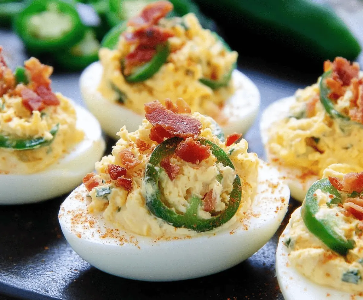 Enjoy these spicy, creamy, and crunchy Jalapeño Popper Deviled Eggs as a flavorful appetizer or snack. They’re sure to be a hit!