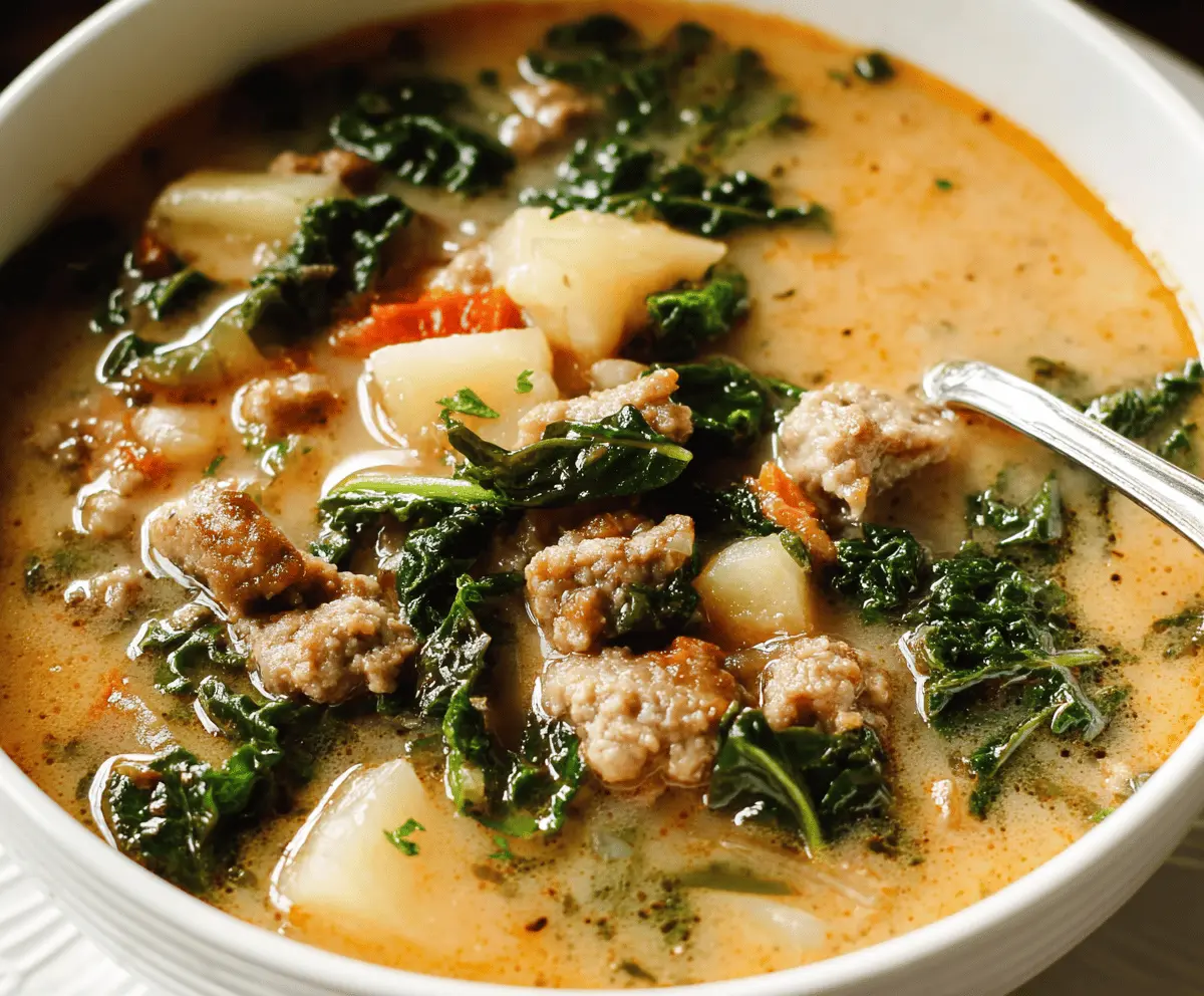 This hearty kale and sausage soup is warm and comforting. Packed with tasty sausage, fresh kale, and a mix of veggies, it’s like a hug in a bowl!