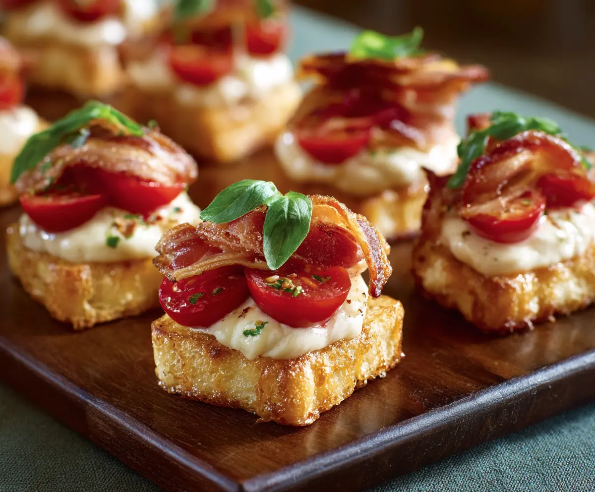 These Kentucky Hot Brown Bites are mini versions of the classic dish! With tender turkey, savory cheese sauce, and crispy bacon all on a tasty bread base, they’re pure comfort food.