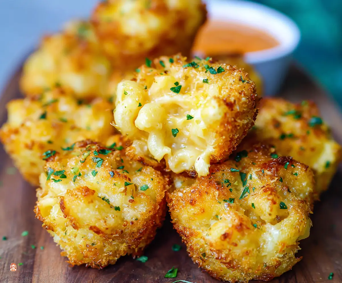 Serve your crispy, gooey mac and cheese bites warm alongside your favorite dipping sauce, like marinara or spicy ketchup. Enjoy every cheesy bite!