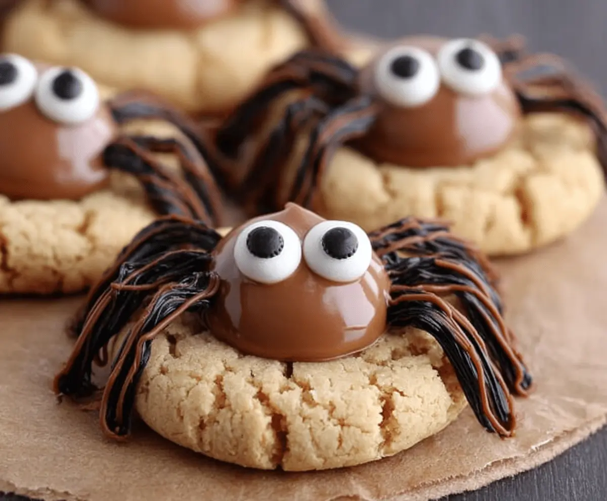Peanut Butter Spider Cookies are as fun as they sound! These chewy cookies are made with creamy peanut butter and covered in chocolate to create adorable spider shapes. 🕷️