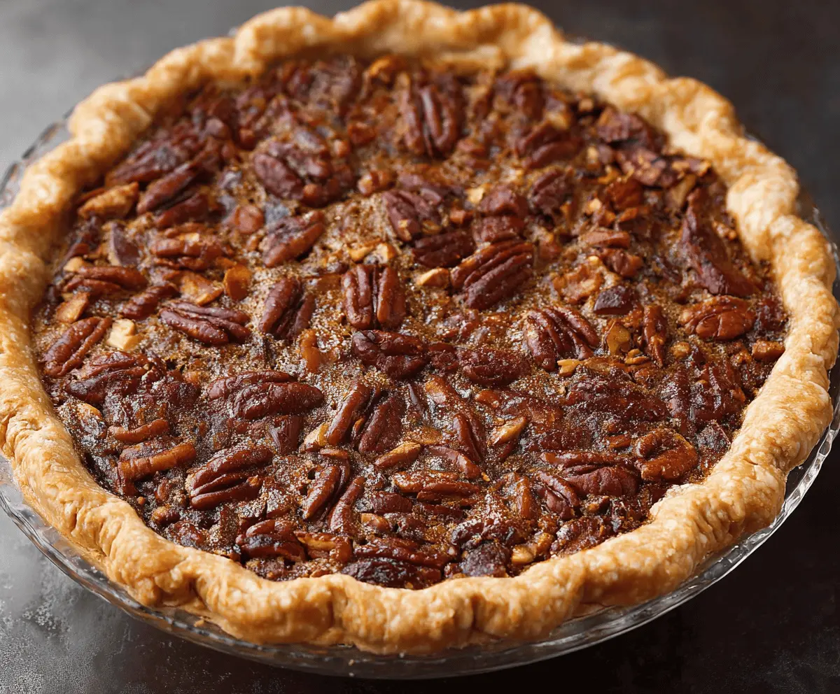 Enjoy your classic pecan pie, complete with a flaky crust and delectable sweet filling studded with crunchy pecans. Happy baking!