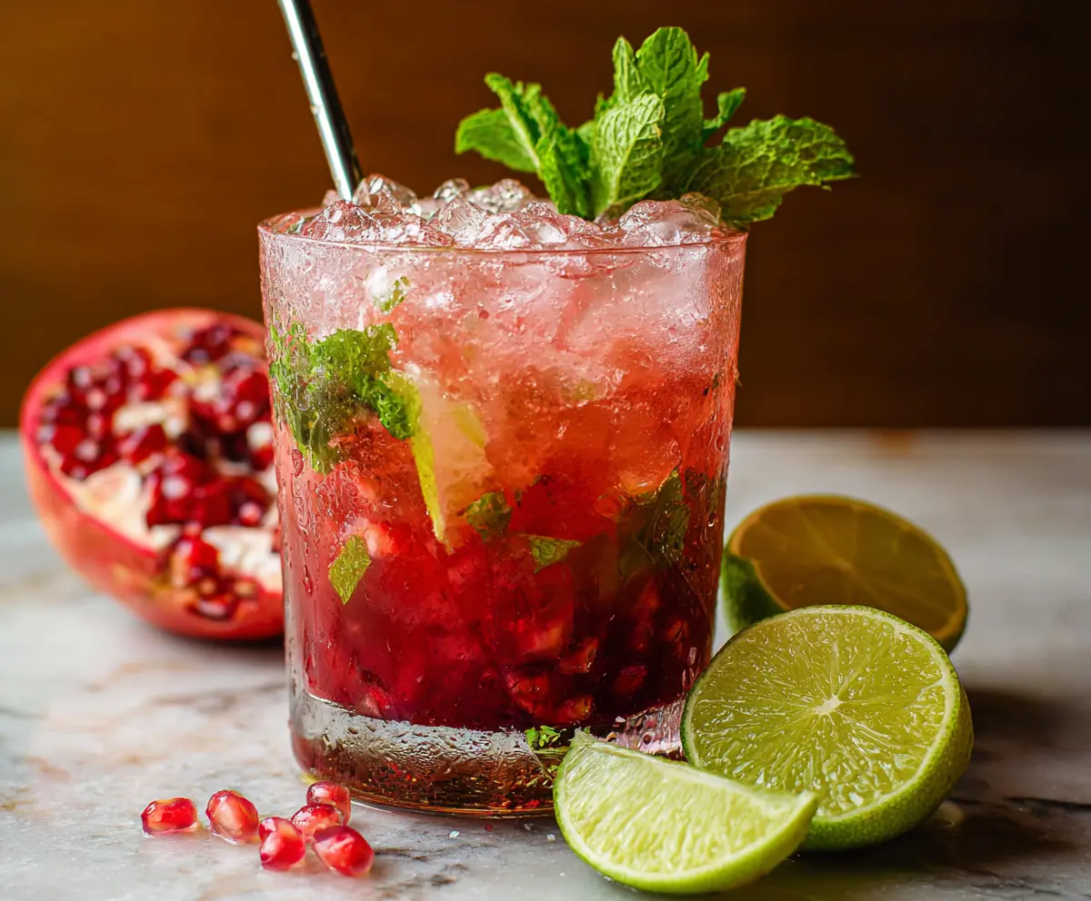 To make your Mojito look extra special, garnish with a fresh sprig of mint, a lime wedge, and a few extra pomegranate seeds on top. Serve immediately with a straw, and enjoy your delicious, vibrant Pomegranate Mojito!