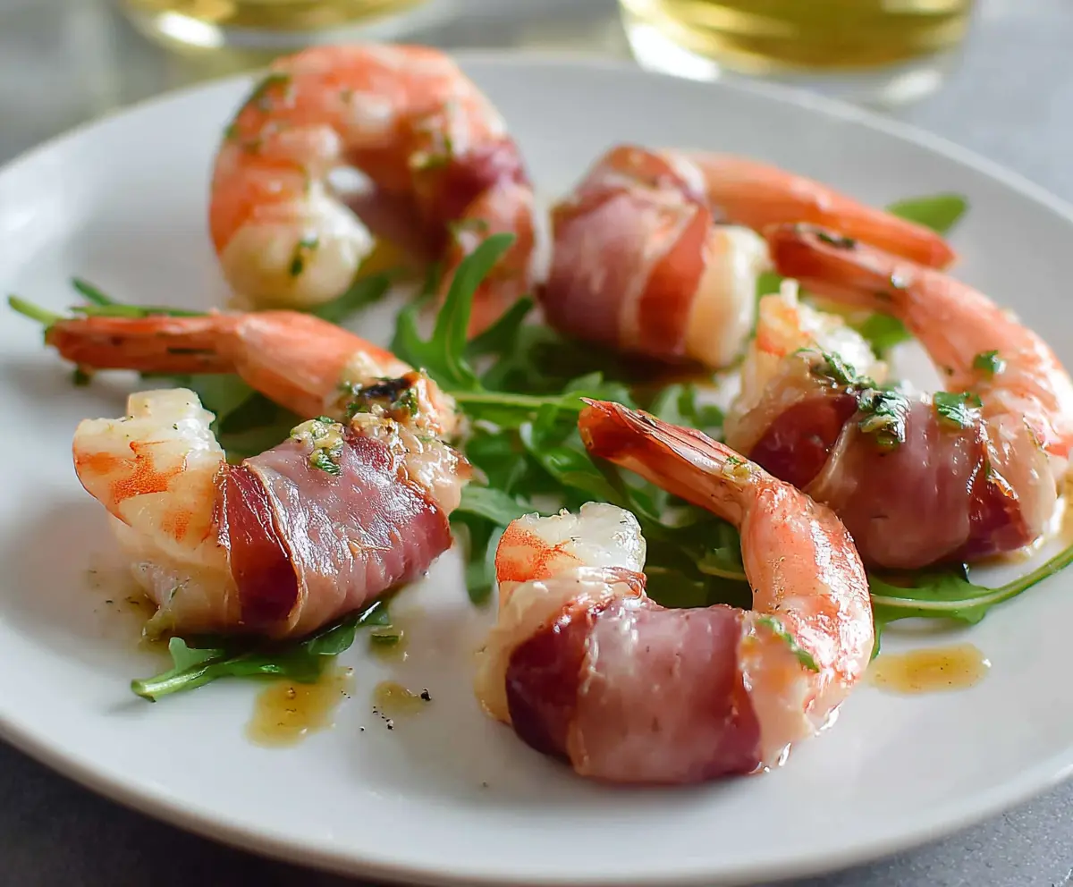 Lay your prosciutto-wrapped shrimp on a platter, ideally over a bed of arugula or mixed greens for a fresh touch. Serve them hot and enjoy this scrumptious appetizer!