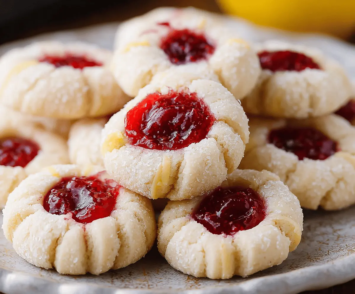 These Raspberry and Lemon Thumbprint Cookies are a tasty treat that will brighten your day! With sweet raspberry jam and zesty lemon, each bite is like sunshine in cookie form.
