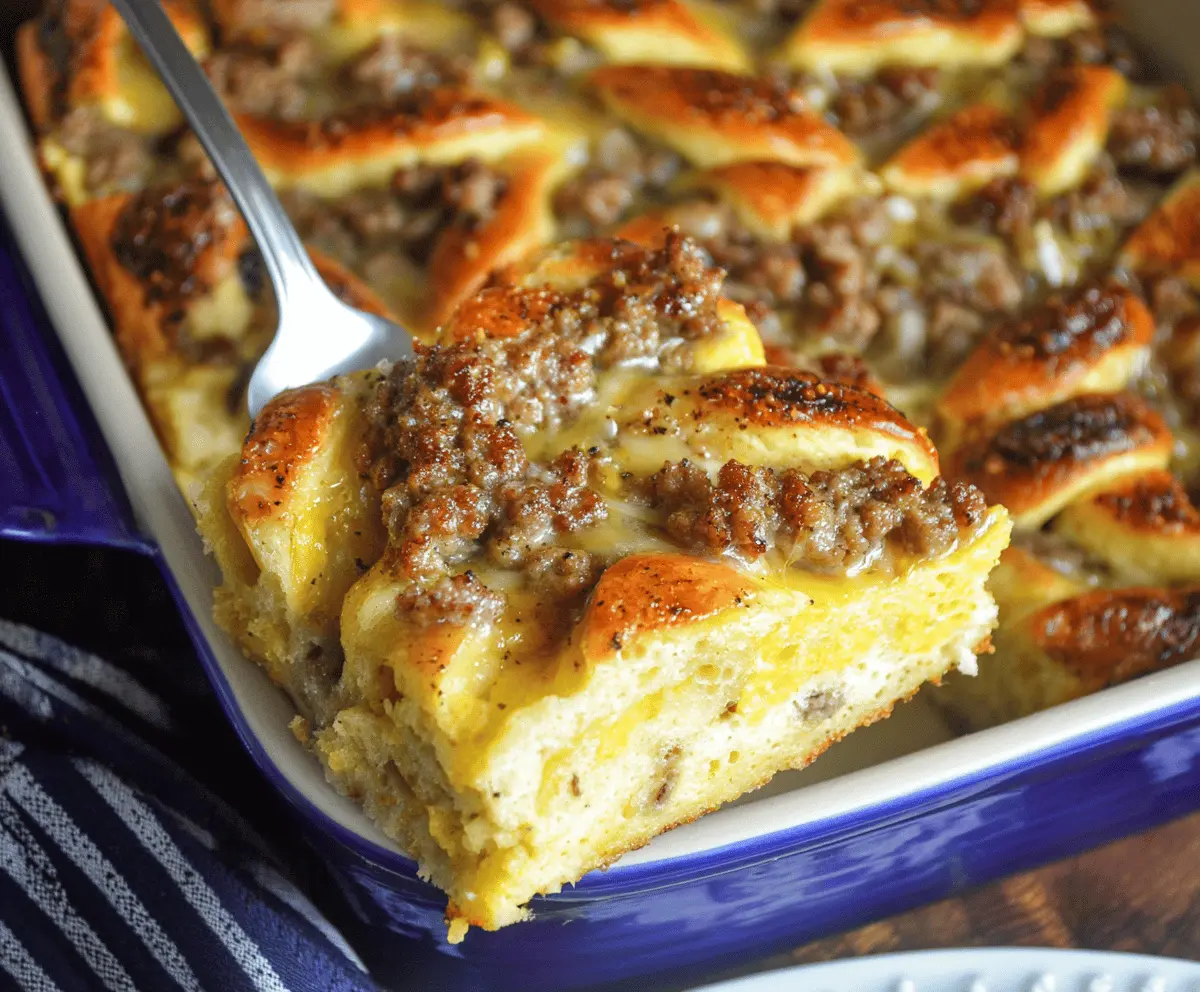 Dig in and savor every bite of this tasty casserole that combines fluffy pancakes with savory sausage and melty cheese. It’s perfect for family gatherings or a cozy breakfast at home!