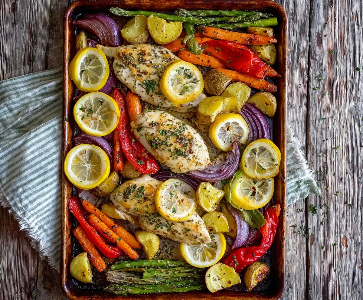 This dish features juicy lemon herb chicken roasted with colorful vegetables all on one pan. It’s fresh, bright, and perfect for a hassle-free meal!