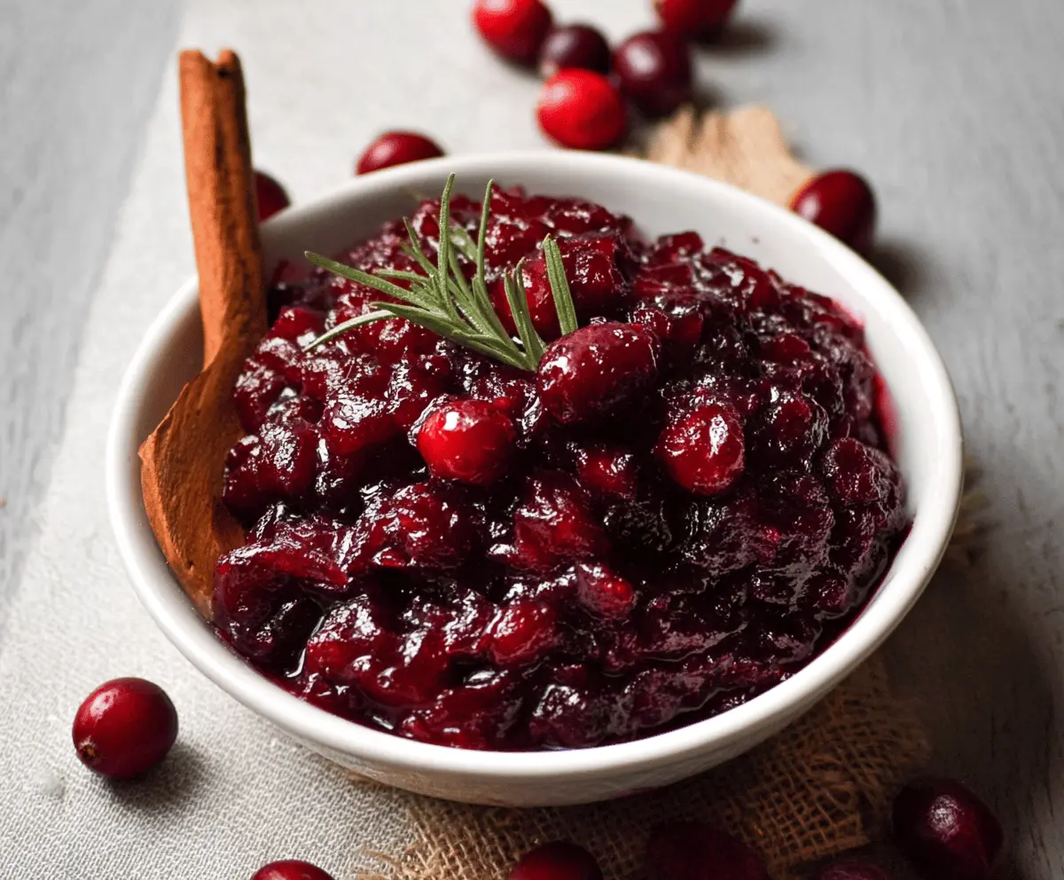 Once cooled, transfer your lovely cranberry sauce to a serving bowl. If you’re feeling fancy, add a fresh rosemary sprig on top for garnish. It looks pretty and adds a little extra flavor!
