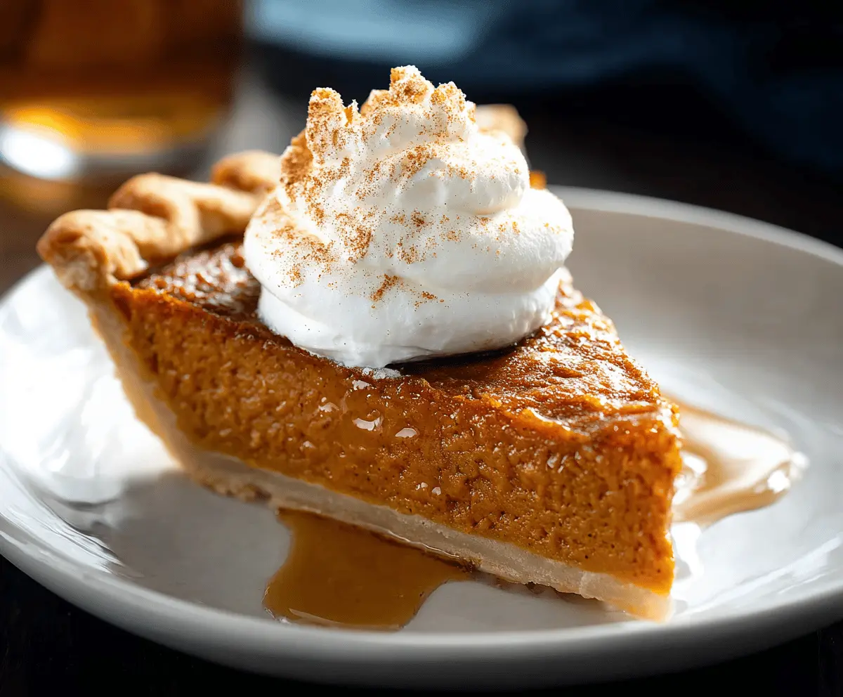 When you’re ready to indulge, slice up the pie and top each piece with a generous dollop of whipped cream. For an extra touch, sprinkle some ground cinnamon or nutmeg on top. Enjoy every creamy, spiced bite!