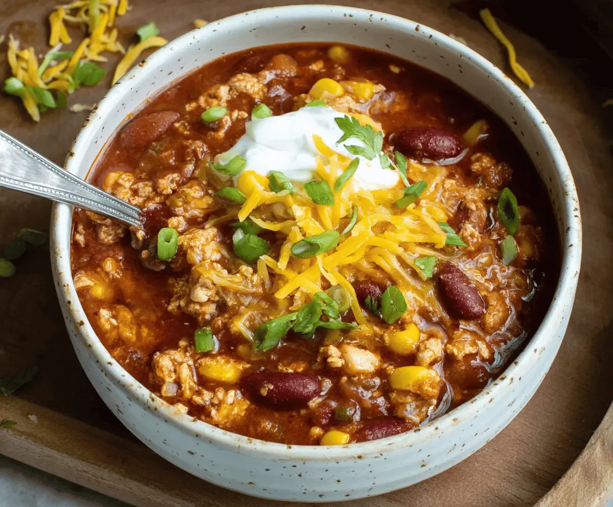 This hearty turkey chili is perfect for a cozy meal and can easily be customized with your favorite toppings. Enjoy! 🍽️